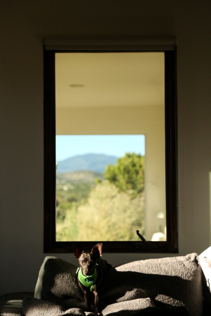 So let me tell you who he is now. His name is Fig. He still loves squeaky toys and he still loves to cuddle. It turns out if you put him on a bed with a blanket, he burrows. He gets zoomies just before bedtime and then we put him in his footie pajamas – since he wiggles too much to be tucked under a blanket – and he goes to sleep with a calming hemp chew is his very own bed. His anxiety is improving, but he’s still unsure sometimes. I wonder who he’ll be when he’s confident, off duty. He has 3 dog sisters he loves to play with. He has a suite of enrichment toys to quell his curious mind.
